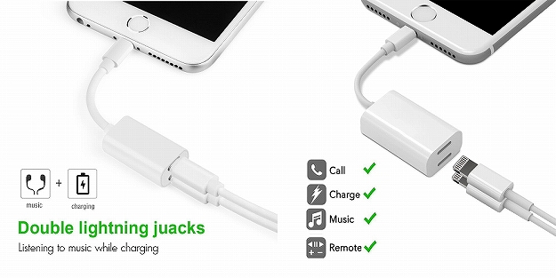 音楽を聞きながら充電も出来ますし、通話機能にも適合している2Lightningジャックです。