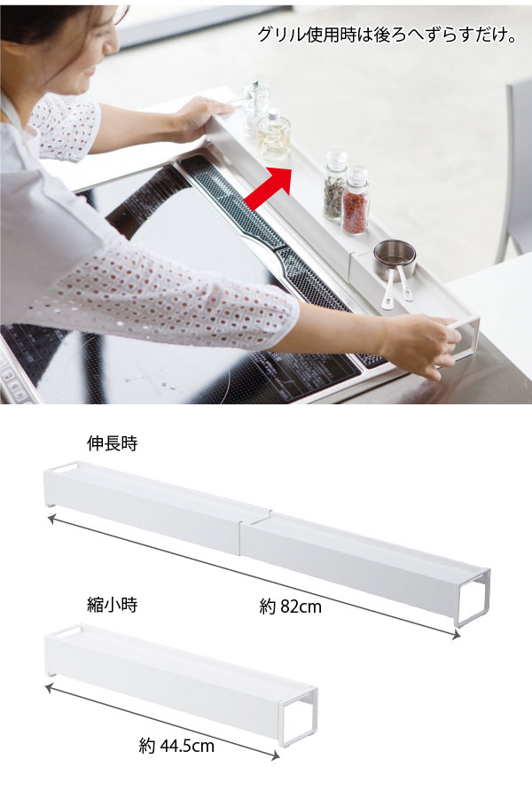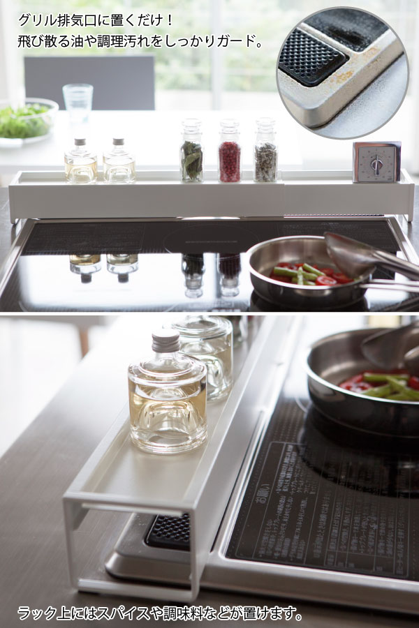 コンロ カバー 魚焼きグリル 棚付き 伸縮 排気口 カバー プレート ホワイト Plate おしゃれ ガスコンロ 油はね 奥 すき間 ガード 白 シンプル 山崎実業 YAMAZAKI