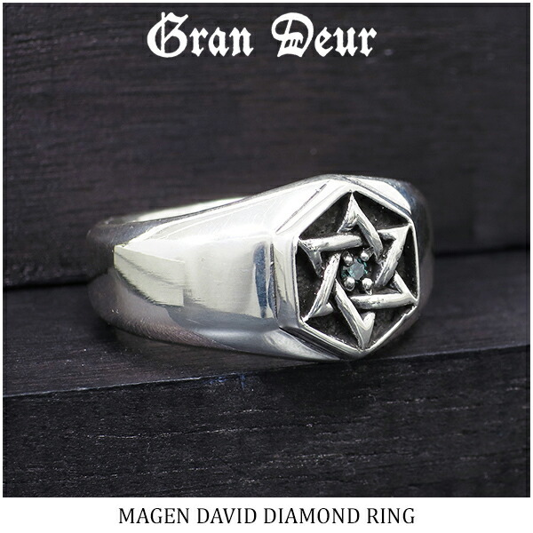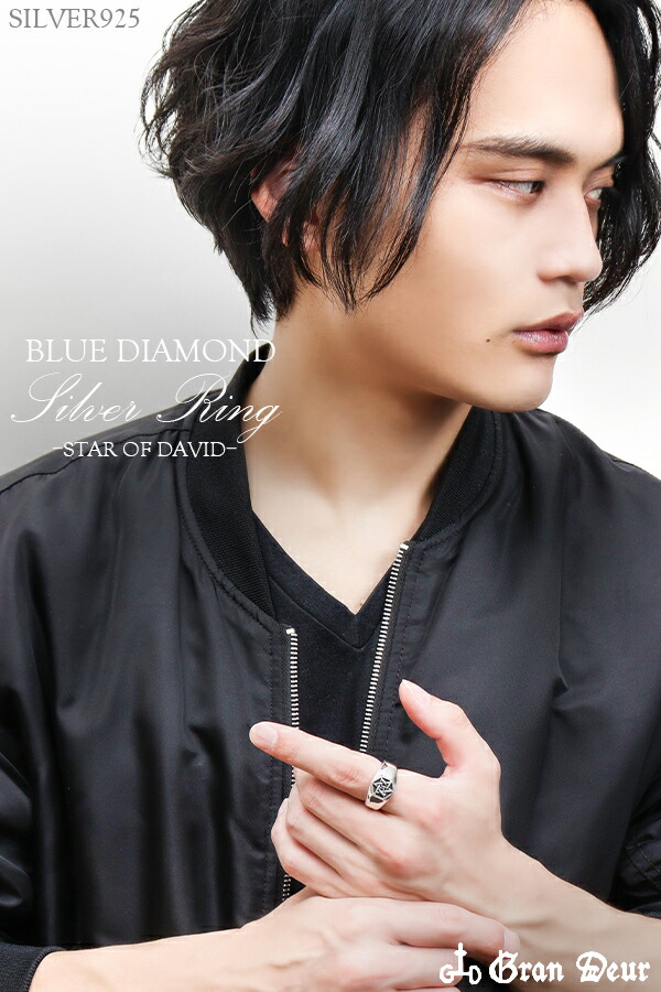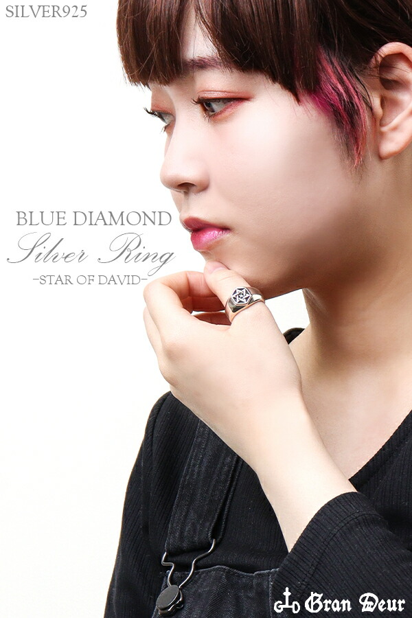 GRAN DEUR ダビデの星 ブルーダイヤモンド シルバーリング 17〜21号/シルバー925 シルバーリング メンズ シルバー 指輪 ブランド