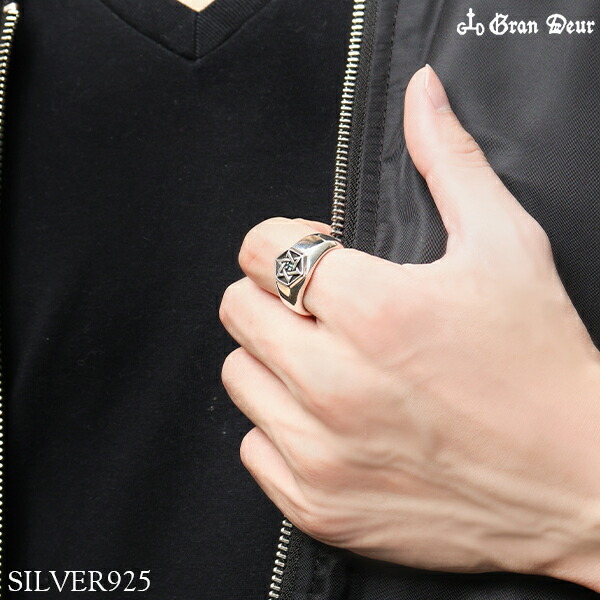 シルバーリング メンズリング 六芒星 ユダヤ ジューイッシュスター シルバー925【新宿 銀の蔵】