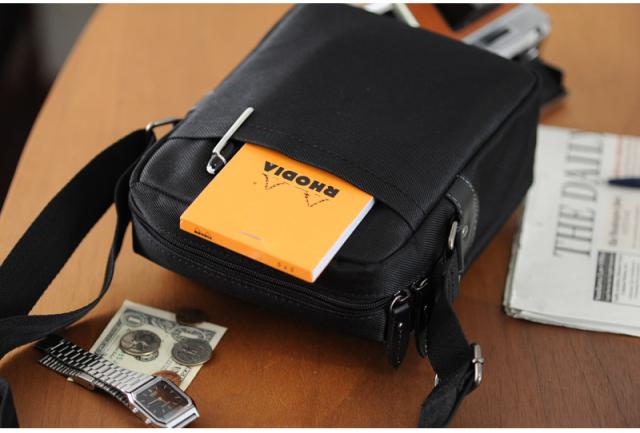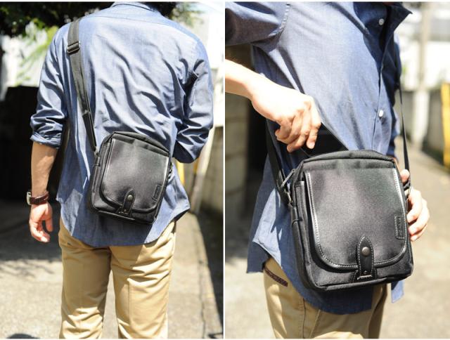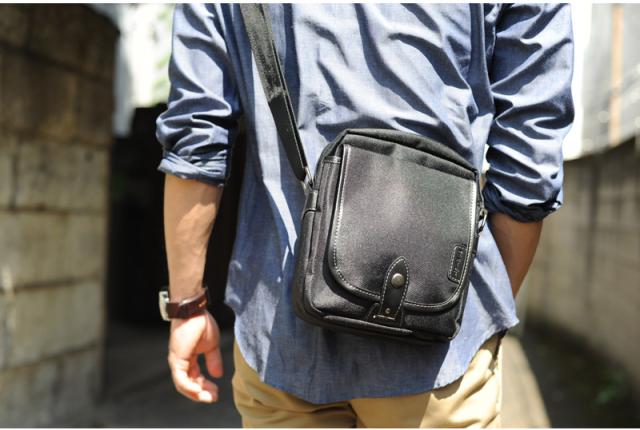 休日のお出かけに最適なショルダーバッグ。グレーのステッチ使いがシックな中に、上品な爽やかさをプラスしています。財布、携帯、デジカメ、本、タバコなど、必需品+αをコンパクトにまとめられるミニサイズ。手ぶら感覚で出かけたり、旅行時のサブバッグにもオススメです。軽量で水や汚れにも強いポリエステル素材を使用。落ち着いた光沢を帯びつつ、見た目にも一役買っています。コーディネート次第で印象が変わる、幅広い男性に似合うキレイめなカジュアルバッグです。 |
