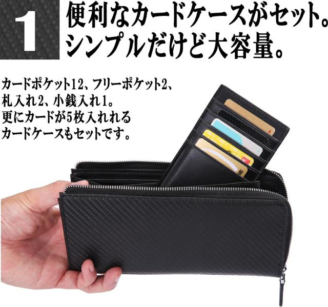 Legare レガーレ 長財布 財布 メンズ レディース カードケース付き L字ファスナー シンプル財布 本革 カーボンレザー コインケース 小銭入れ ブランド 人気