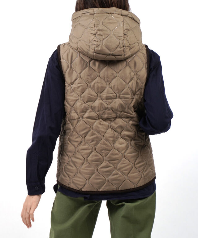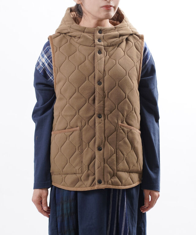 アーメンの定番、リバーシブルキルトシリーズからフードベストのご紹介です。