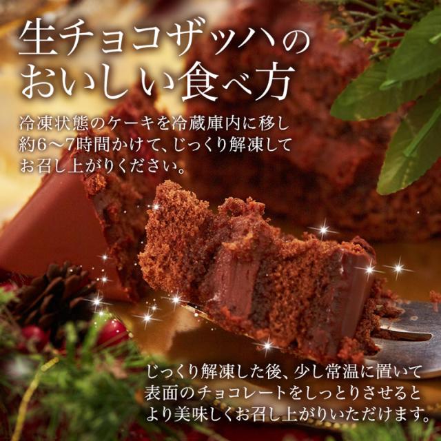 冷蔵庫内で6〜7時間かけて、じっくり解凍してお召し上がりください。じっくり解凍後、少し常温に置いて表面のチョコレートをしっとりさせると、より美味しく召し上がりいただけます。