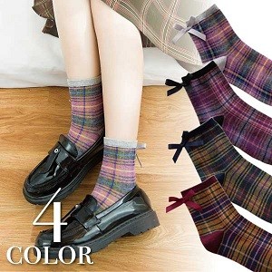 【4色展開】 バックリボン タータンチェック ショートソックス♪
