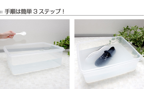 ●つけおき洗いなので、ゴシゴシ洗わず簡単キレイに、上履きやスニーカー類を除菌・漂白・消臭!