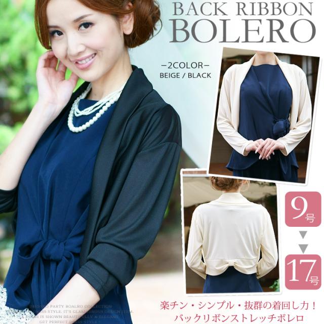 ボレロ 結婚式 ボレロ ストレッチ 長袖 結婚式ボレロ 大きいサイズ 送料無料 2way バックリボン ストレッチボレロ カーディガン 長袖 パ