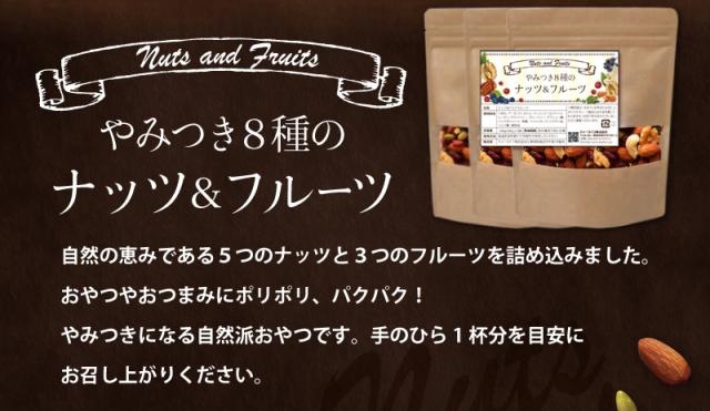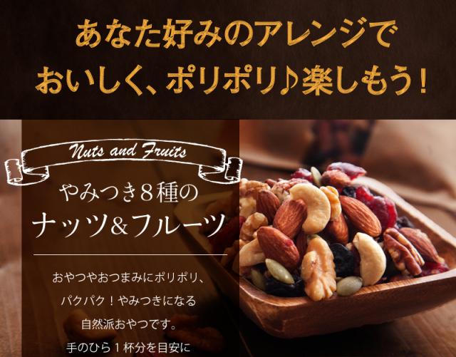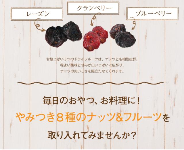 やみつき 8種のナッツ&フルーツ (無添加 無塩 素焼き ナッツ類 ミックスナッツ ドライフルーツ アーモンド くるみ カシューナッツ レーズン ブルーベリー)《ティーライフ》