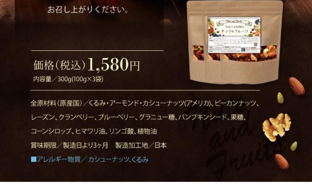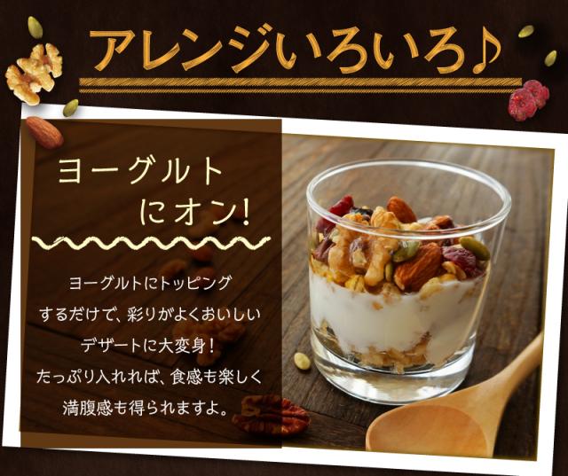 くるみ、アーモンド、カシューナッツ、ピーカンナッツ、レーズン、砂糖、ブルーベリー、クランベリー、パンプキンシード、植物油