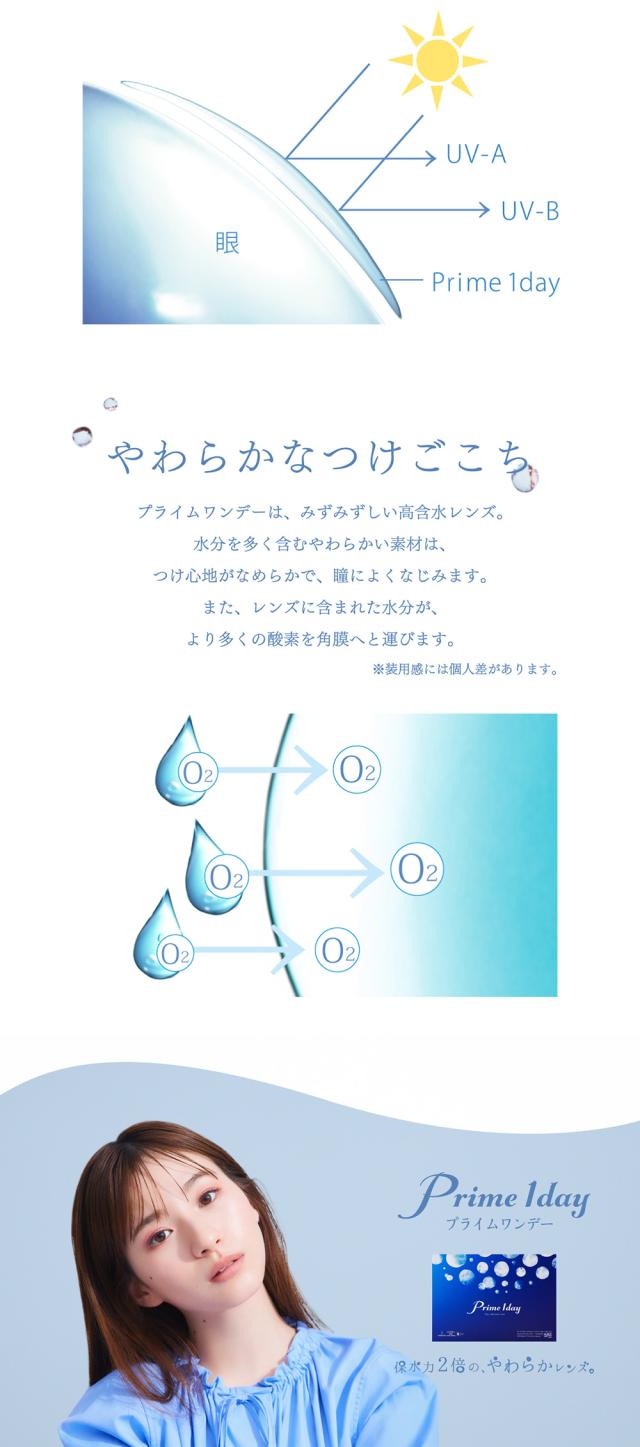 コンタクトレンズ プライムワンデー 1箱 30枚入 含水率58% PRIME 1DAY UV加工 近視 度あり クリアコンタクト ソフトコンタクト