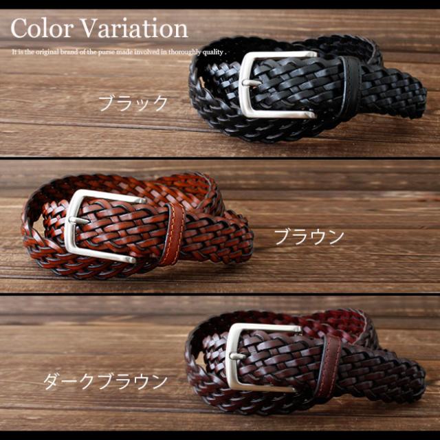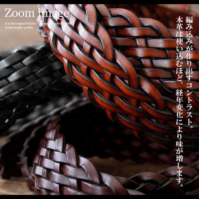 艶やかな表面の牛革を編み込んだレザーベルトです。艶のあるカラーと編み込み模様のデザインがオシャレです。カジュアルにもフォーマルにも使用することができる落ち着いた雰囲気で普段使いにぴったりです。