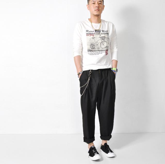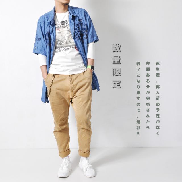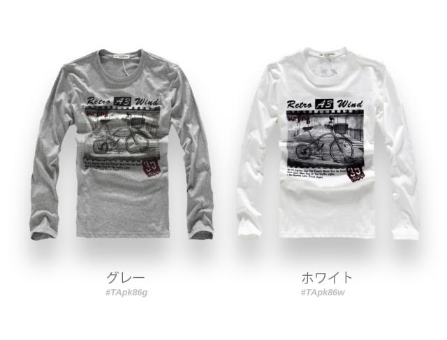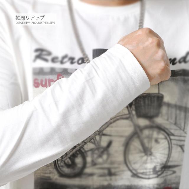 tsa 数量限定 長袖Tシャツ メンズ ロンT ストレッチ クルーネック グラフィック #TApk86 バイシクル プリント アメカジ M便 BL