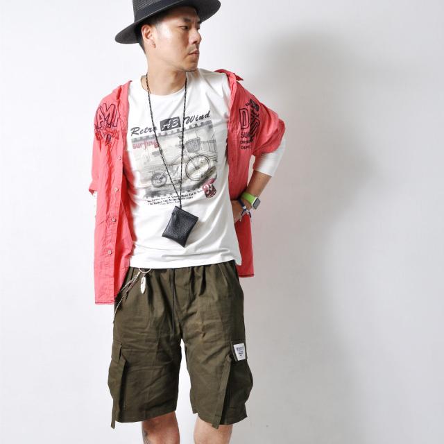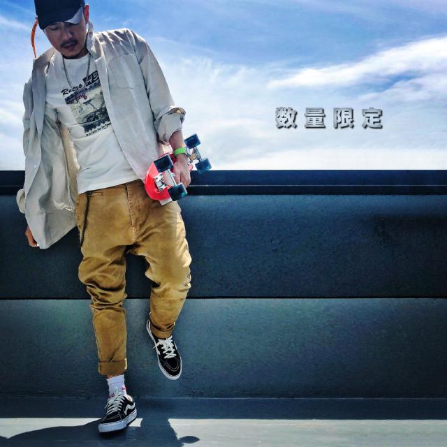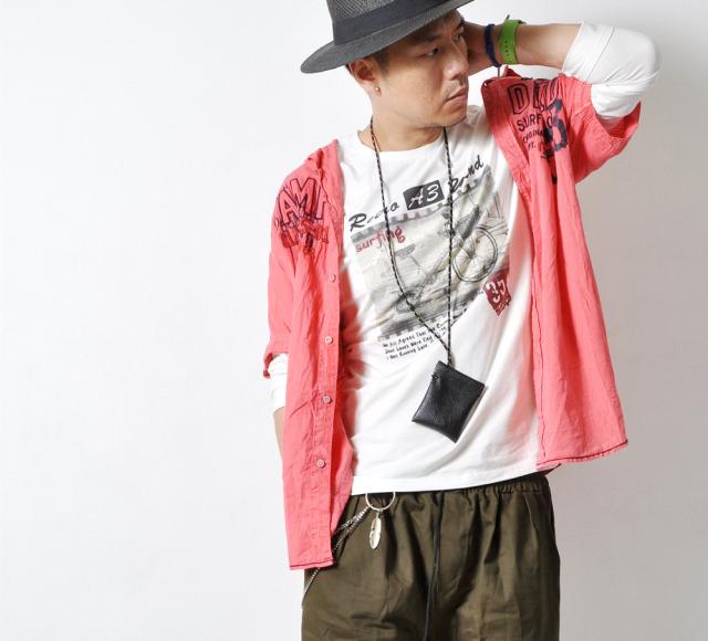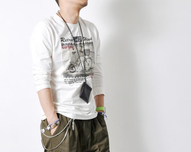 大きなプリントが目を惹く、長袖Tシャツです。プリントのかすれ加減や、染めの風合いも雰囲気よく