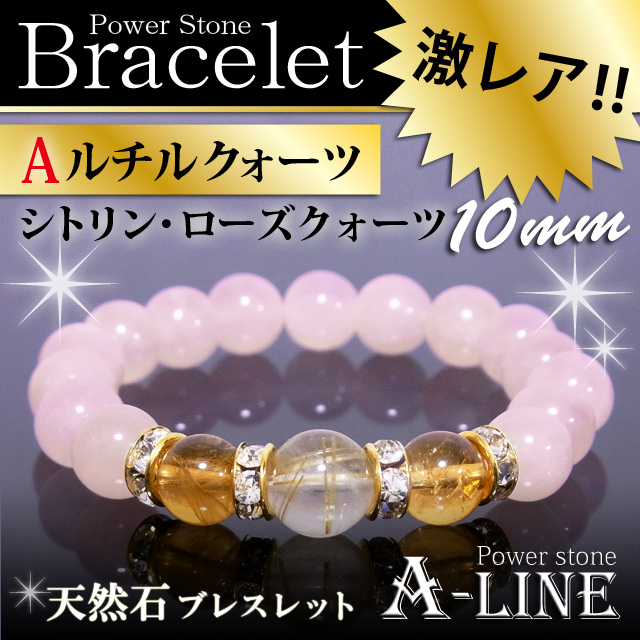パワーストーン ブレスレット 金運UPに Aルチルクォーツ11mm・シトリン&ローズクォーツ10mm PW-3232
