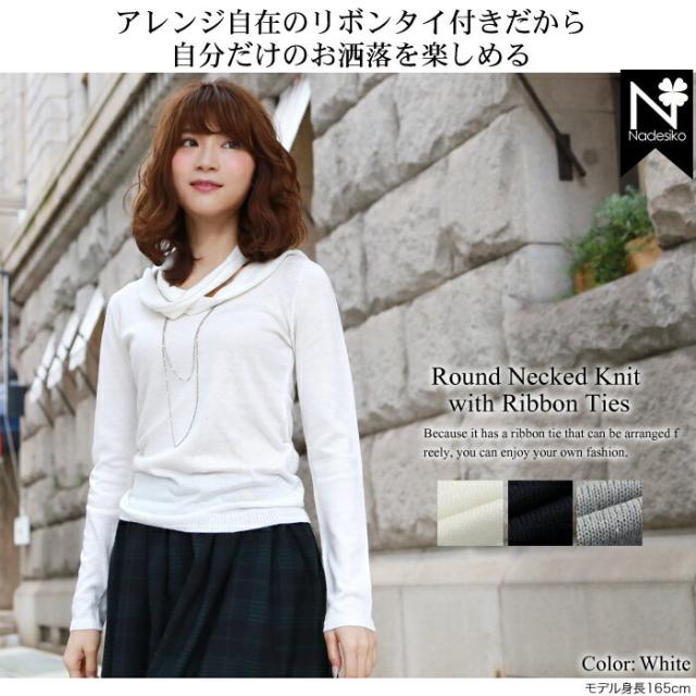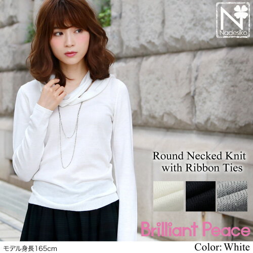 「なでしこ」 BrilliantPeace リボンタイ付きラウンドネックニット ニット レディース リボン ネクタイ