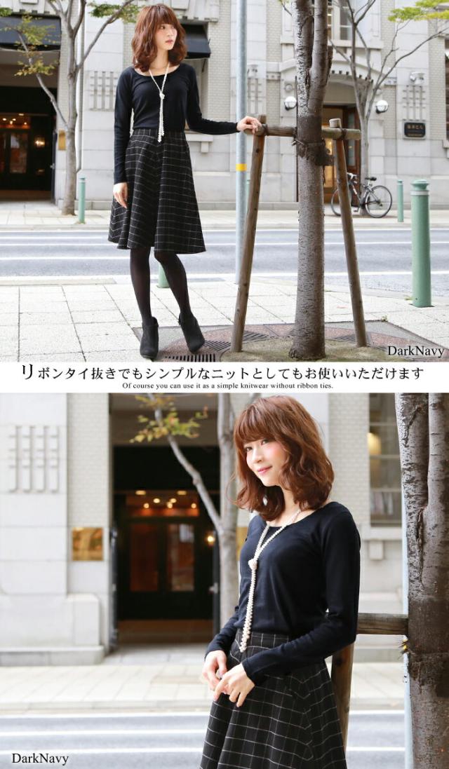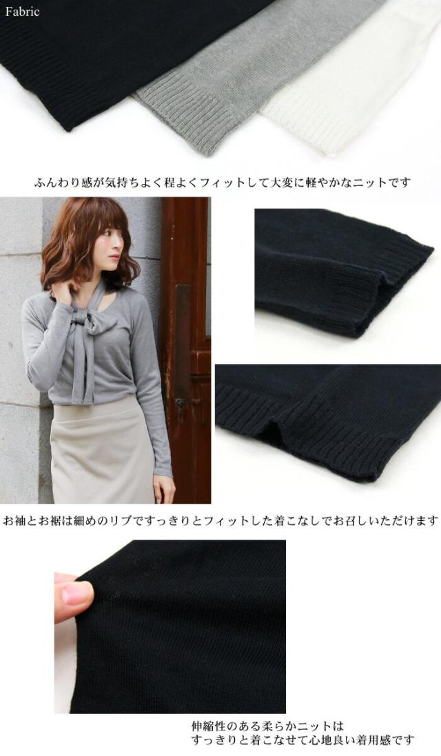 雑誌掲載のブリピで人気のリボンタイ付き薄手ニットです。