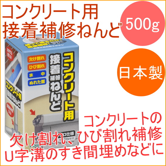 コンクリート用接着補修ねんど 500g (E02) 接着 欠け割れ ひび割れ 水中 コンクリート 充てん すき間
