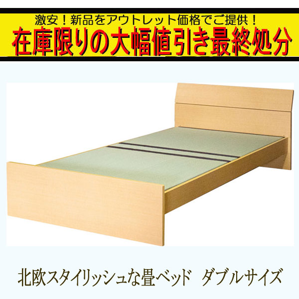 在庫処分 大幅ディスカウント 送料無料 北欧スタイル 畳ベッド ダブル 床面高さ調整可能 タタミベッド ベッド 畳