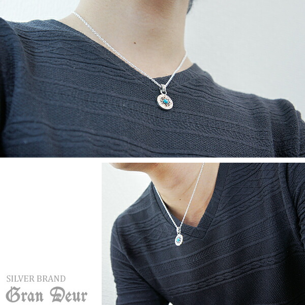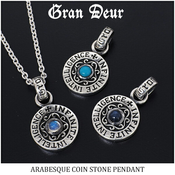 GRAN DEUR アラベスク 唐草 コイン ストーン シルバーペンダントトップ ペンダントヘッド(チェーンなし)シルバー925 メンズ ネックレス ブランド