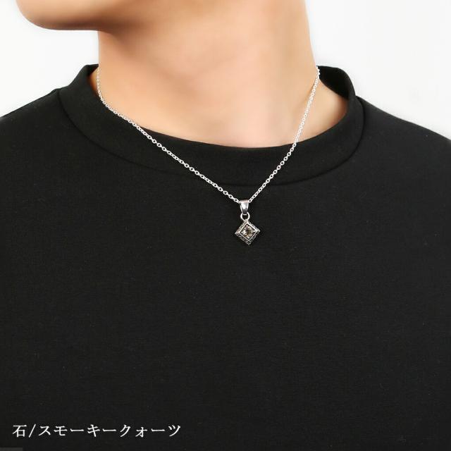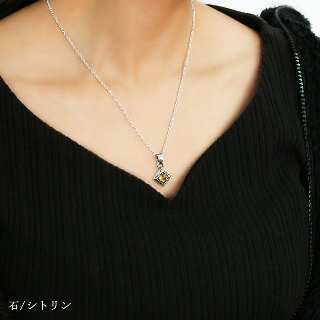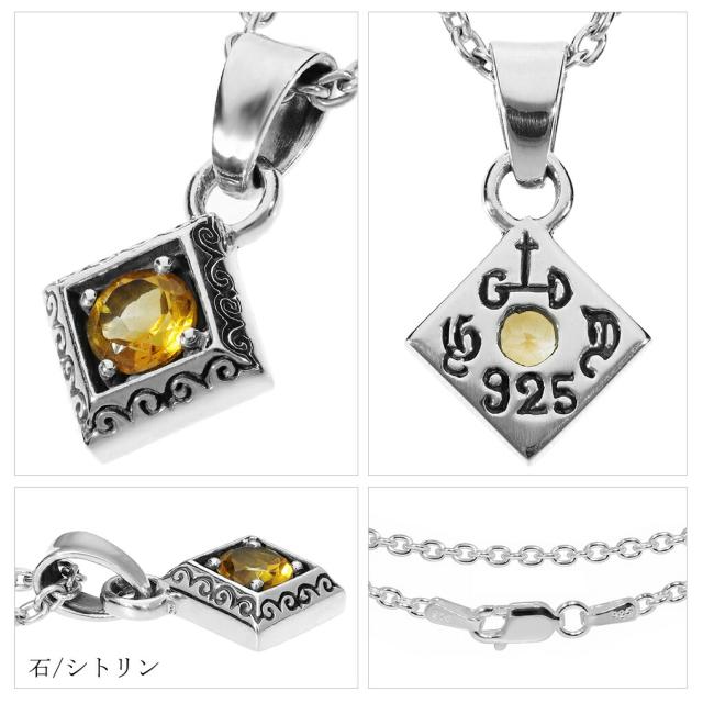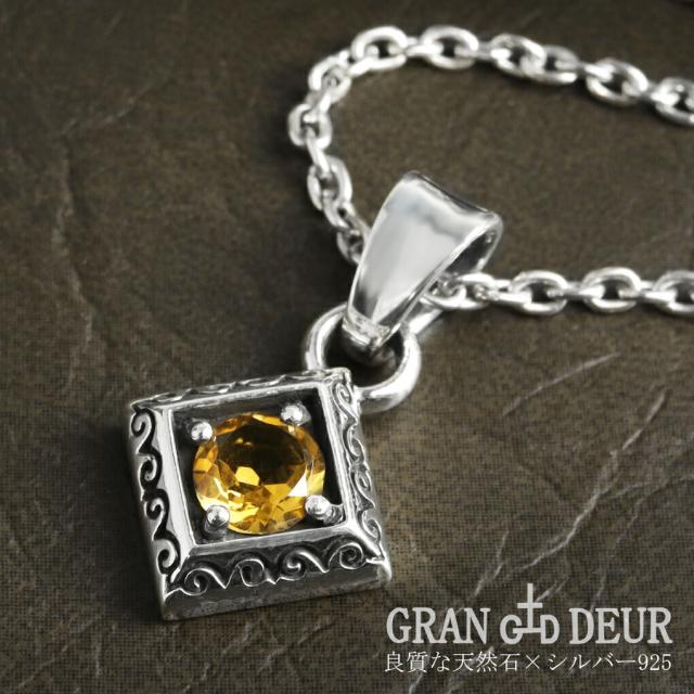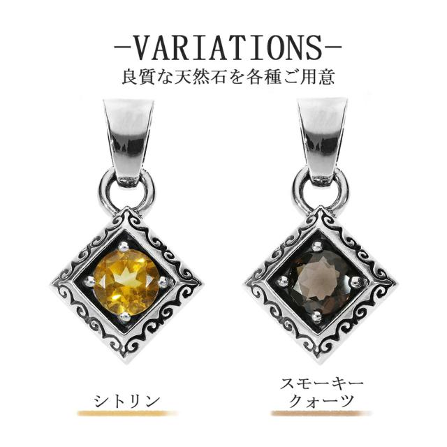 GRAN DEUR 選べる 天然石 アラベスク スクエア カット シルバー ネックレス ペンダント ペンダントトップ スモーキークォーツ シトリン 石 唐草