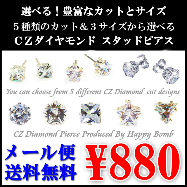 【5000ペア突破】 CZダイヤモンド ステンレス ピアス 【カット&サイズを選べる】 メンズ&レディースOK 【送料無料】【メール便】