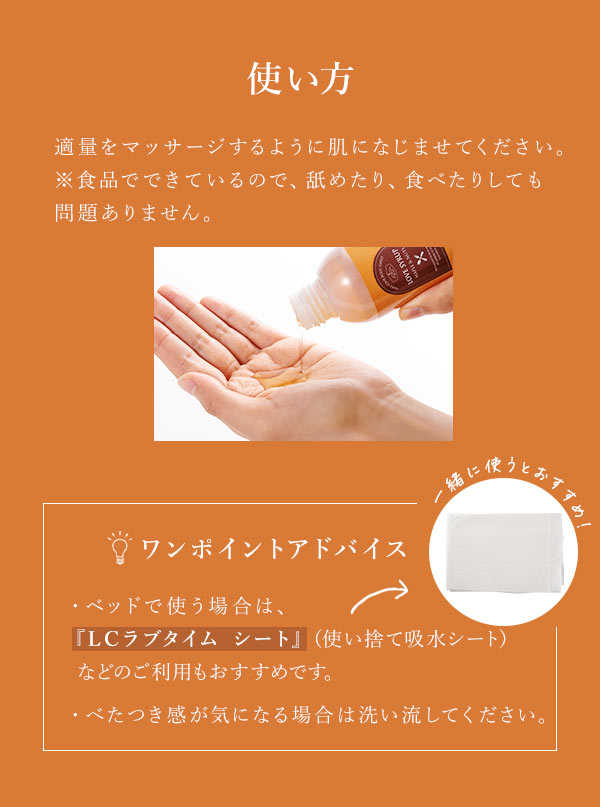 『美味しくて、食べてもOKな食品から出来ている潤滑ローションを作ってみたい』このテーマを元に、取引先の食品会社さんと開発したのが食べられるローション『ラブシロップ』。