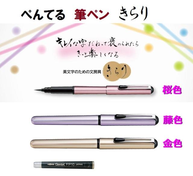ぺんてる筆ペン きらり 1100円 XGFKP 本物の筆のような 軟筆 携帯用 メール便OK 万年筆型 本体 黒インク 墨 年賀状 写経 ナイロン毛 メール便 女性 プレゼント