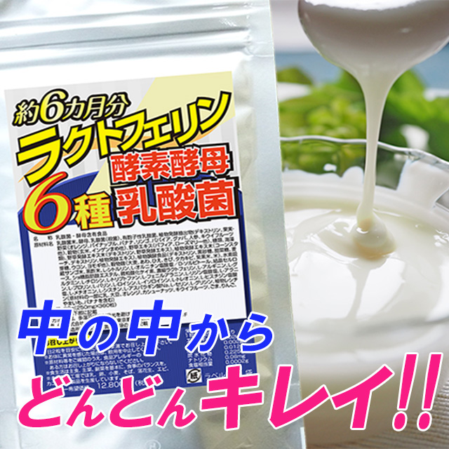 【送料無料】ラクトフェリン酵素酵母6種乳酸菌[約6か月分]ラクトフェリン+酵素+酵母+6種乳酸菌の力が相まって中の中☆どんどんキレイ スッキリ ヨーグルト 若々 アミノ酸 EC-12 フェカリス菌 アシドフィルス菌 プランタラム菌 植物 野菜 果物 生活 男性 サプリメント