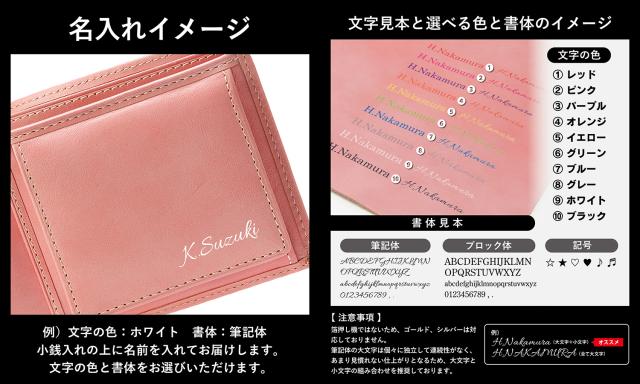 ●内側小銭入れフラップ上に名前を入れてお届けします。