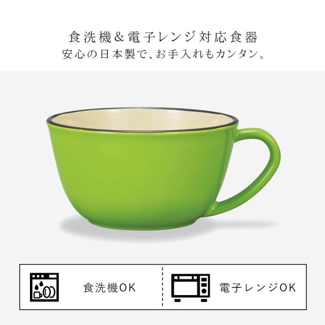 色鮮やかな発色とナチュラルな質感がデイリーユースによく合う。スープカップ全4カラー。