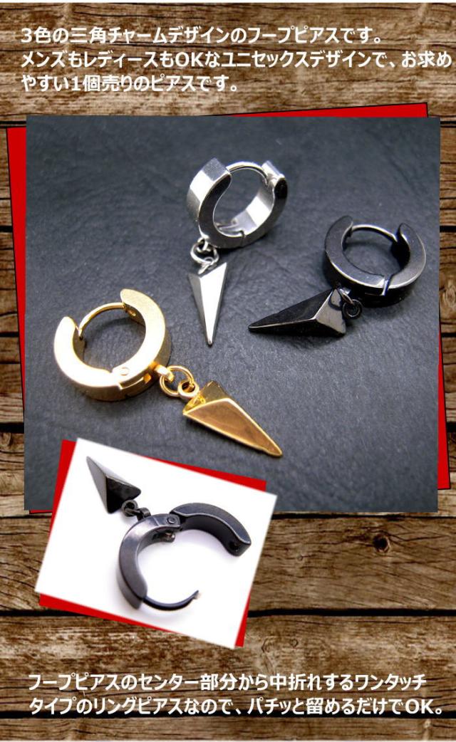 三角チャーム アレルギー対応 ステンレス フープ ピアス 中折れ ワンタッチ フープ ピアス (1個売り)1-1271-