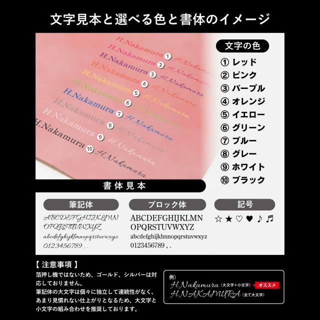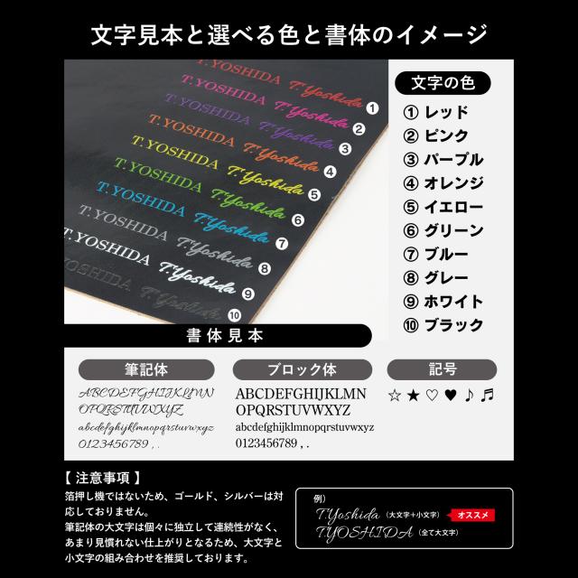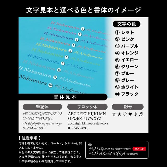 ※文字の色や書体のイメージ、対応可能な文字と記号は画像見本をご参照ください。