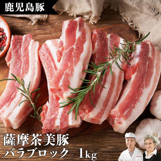 九州産 銘柄豚 ブランド豚 ぶた肉 豚肉 鹿児島県産 国産豚 チャーシュー 角煮用 豚バラ ブロック 豚バラ かたまり 薩摩茶美豚 1kg