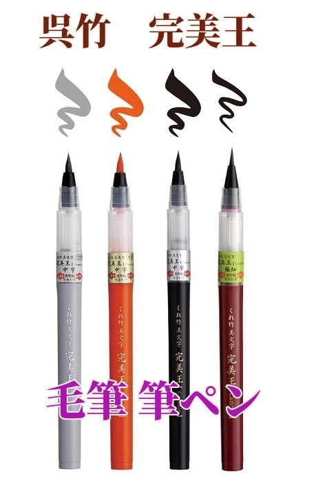 呉竹筆ペン XO50 完美王 極細 中字 750円 うす墨 朱墨 美文字 メール便 送料込 くれ竹 クレタケ イラスト 本体 軟筆 毛筆 タイプ 年賀状 墨液