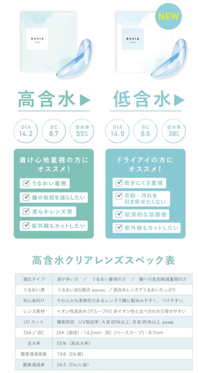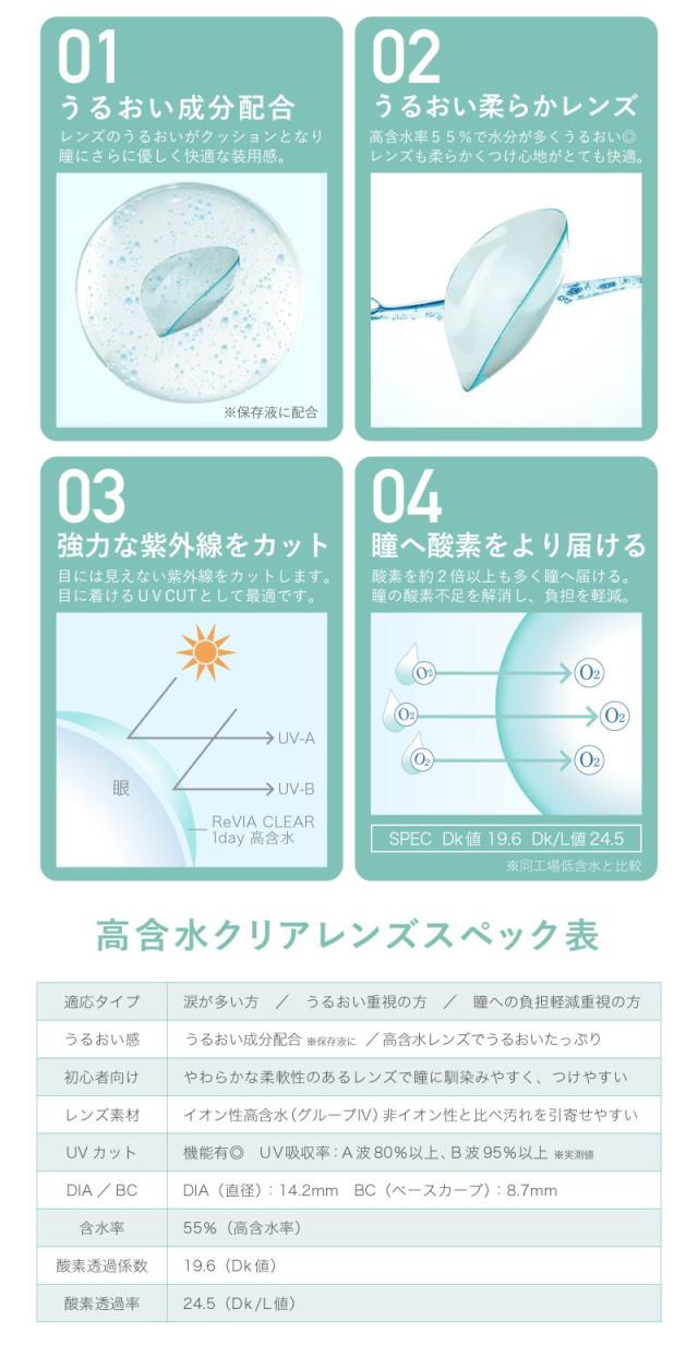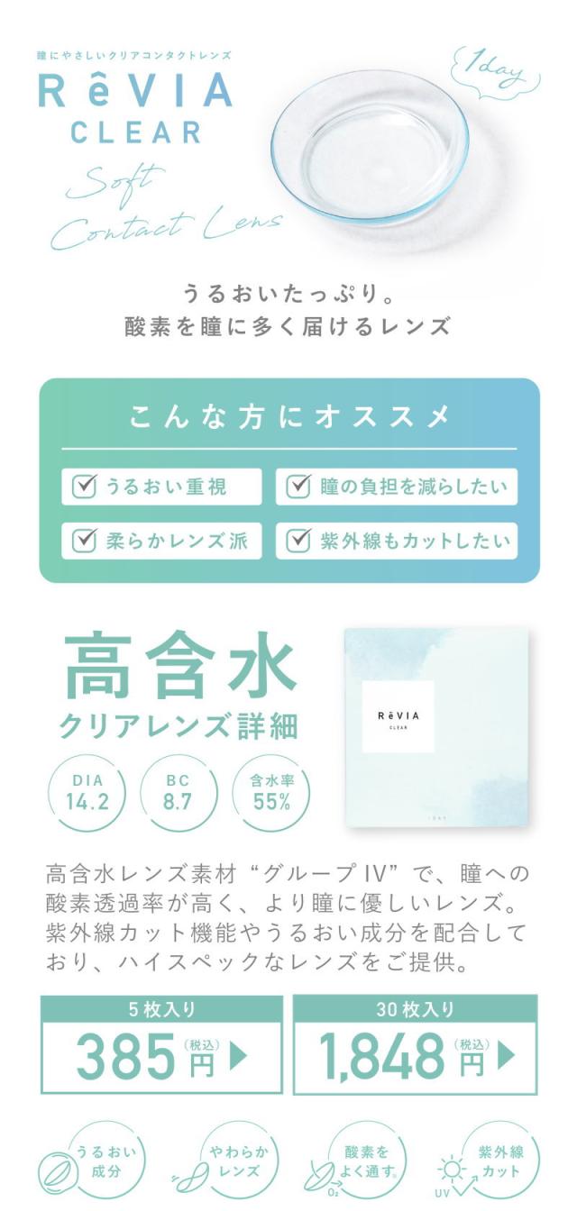 2箱セット 高含水 レンズ レヴィア クリア 1箱30枚入り 1日使い捨て ソフトコンタクトレンズ 高含水 UV加工 big_bc