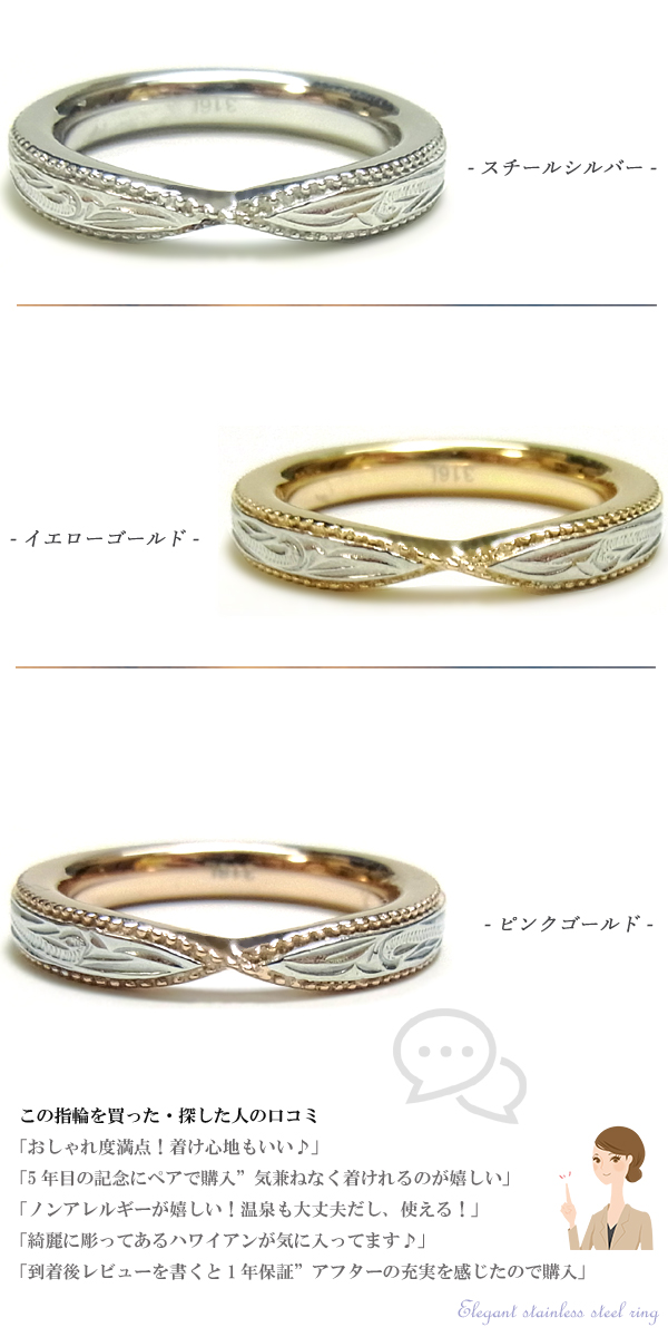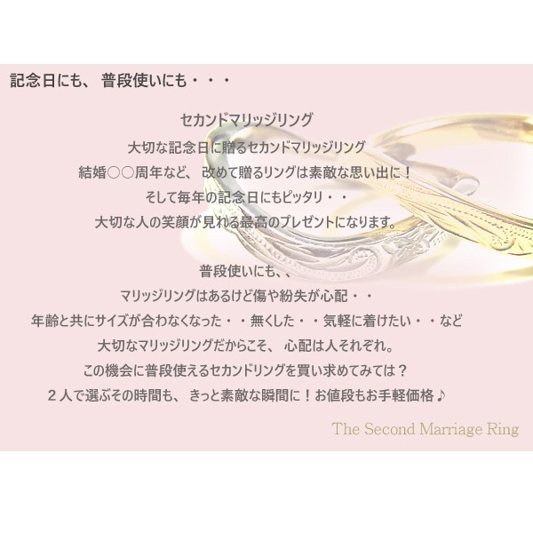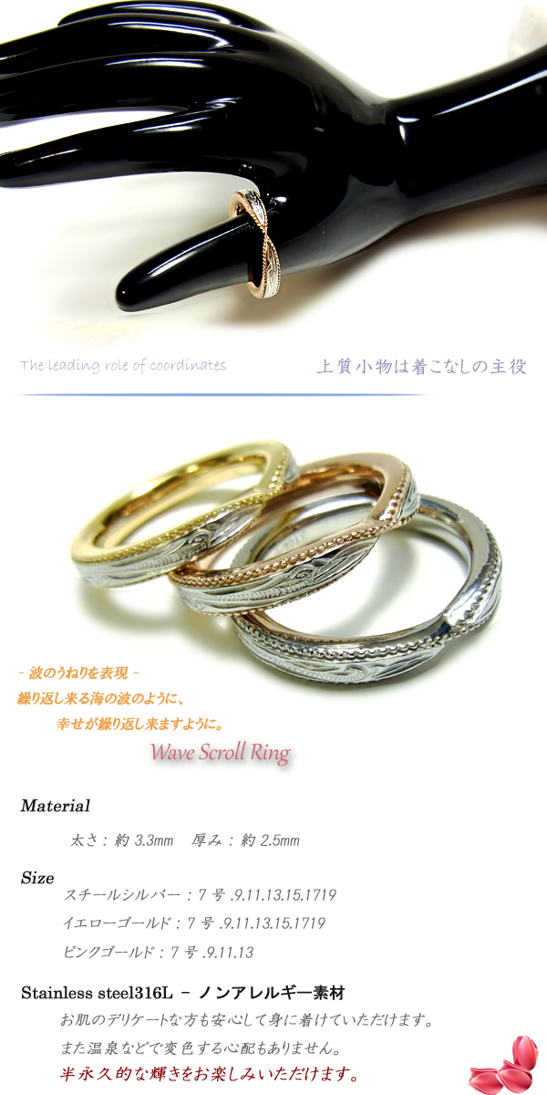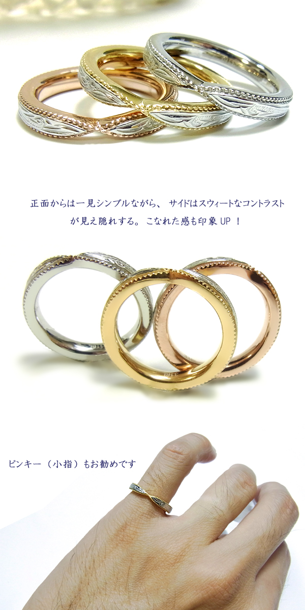 - 薬指用に小さなサイズを購入したのですが、綺麗に波が彫られてました。ピンクゴールドも肌に馴染んできれいですよ。今回はセールでお安く買えたので、とても嬉しかったです。ありがとうございました!