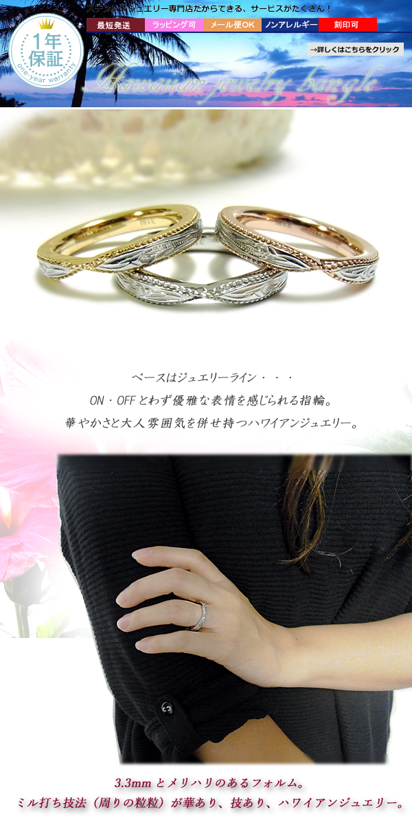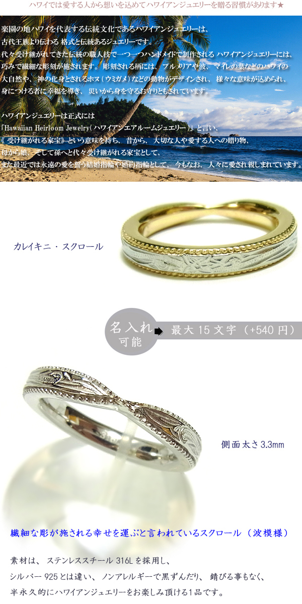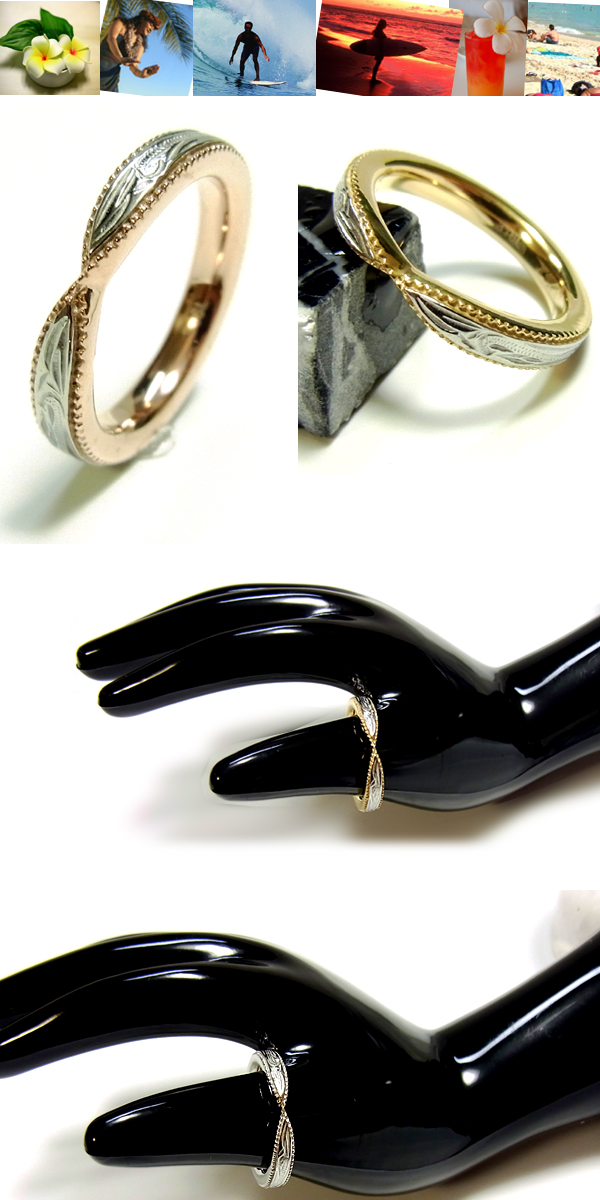 送料無料ハワイアンジュエリー リング ゴールド プルメリア スクロール マリッジ 記念日 誕生日 プレゼント ギフト ラッピング対応 アレルギー対応 ペアリング セットにも