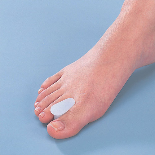 ・親指と人差し指の間に挟んで、衝撃を和らげて外反母趾を緩和します。