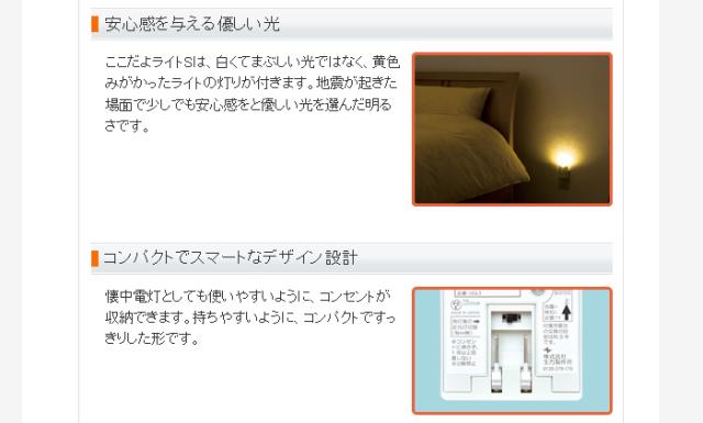災害対策商品の普段は使えず仕舞い込んでしまうという問題を解決した機能です。またこの機能により、普段からライトの存在を意識づけることができます。