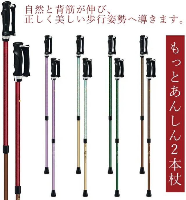 ◇滑りにくい高機能先ゴム採用のハイスペックモデル「もっと安心2本杖」。