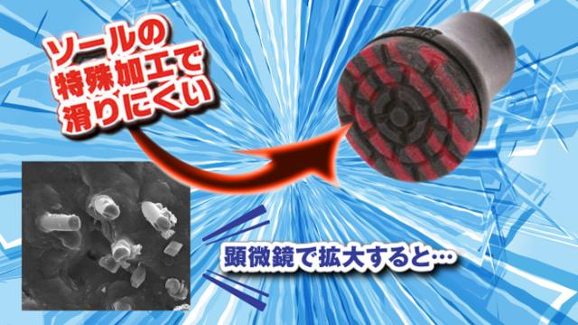 特殊加工がされた先ゴムは、濡れた路面や凍結した道路で滑り止め効果を発揮。転倒予防とふらつき防止に役立ち、正しい姿勢を保つためのトレーニングをサポートします。