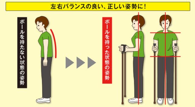 ■2本のポールを持つだけで自然と背筋が伸び、正しく美しい歩行姿勢へ導きます。