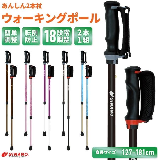 ウォーキングポール シナノ あんしん2本杖 2本1組 ノルディックウォーキングポール 高齢者 初心者 ステッキ 長さ調節可能 杖先ゴム ウォーキング用 足 歩行サポート トレーニング 健康器具 猫背矯正 リハビリ 介護予防 転倒予防