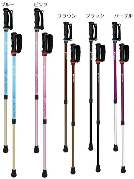 ◇ポールウォーキング「あんしん2本杖(2本1組)」は、ウォーキングポールを楽しまれたいご年配の方向けに開発されました。長さの調節方法は、ボタンを押し込むラチェット式です。握力が弱めの方も、簡単に長さが調節でき、安全に固定できる設計です。