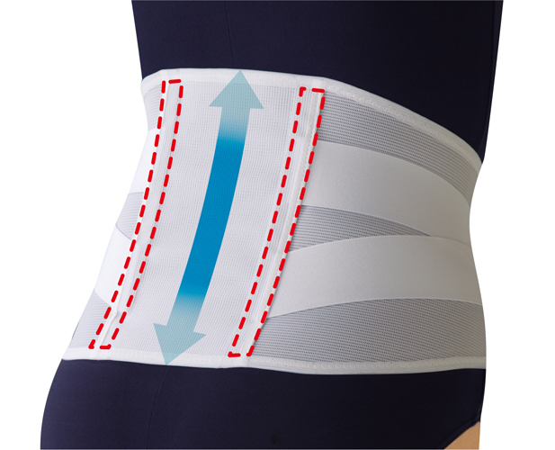 腰の痛みや姿勢の気になる方に、2本のプラスチック板が腰椎をしっかりサポートするコルセットです。