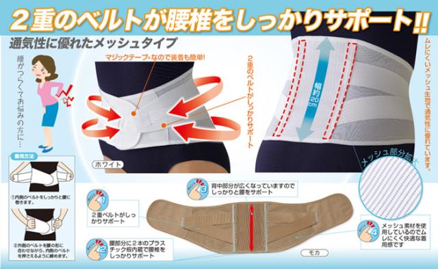 ・2重のベルトが腰椎をしっかりとサポートします。