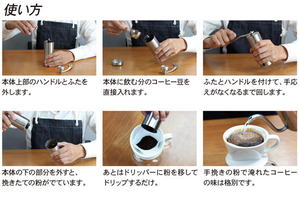 どこでも挽きたてを楽しむことができるアウトドアにもぴったりなコーヒーミル。