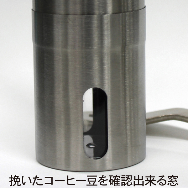 ・挽いたコーヒー豆を確認できる窓付き。