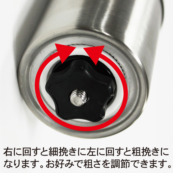 ・右に回すと細挽きに左に回すと粗挽きになります。お好みで粗さを調節できます。