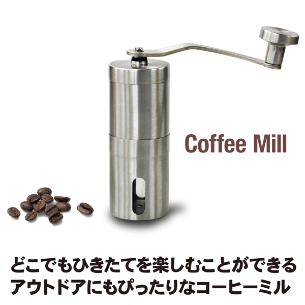 【送料無料】汚れたら簡単に分解でき、水洗い可能!どこでも挽きたて!アウトドアにも大活躍なコーヒーミル!コーヒーミル(AP-620303)コンパクト アウトドアにも キャンプ用品 手動 手挽き 珈琲 おしゃれ ステンレス 水洗い